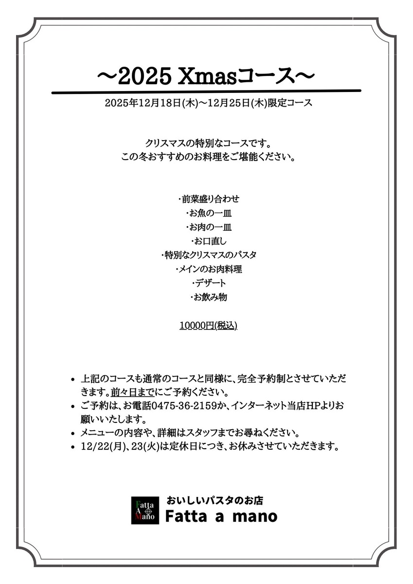 ・上記のコースは、12/18(木)〜25(木)の期間限定とさせていただきます。